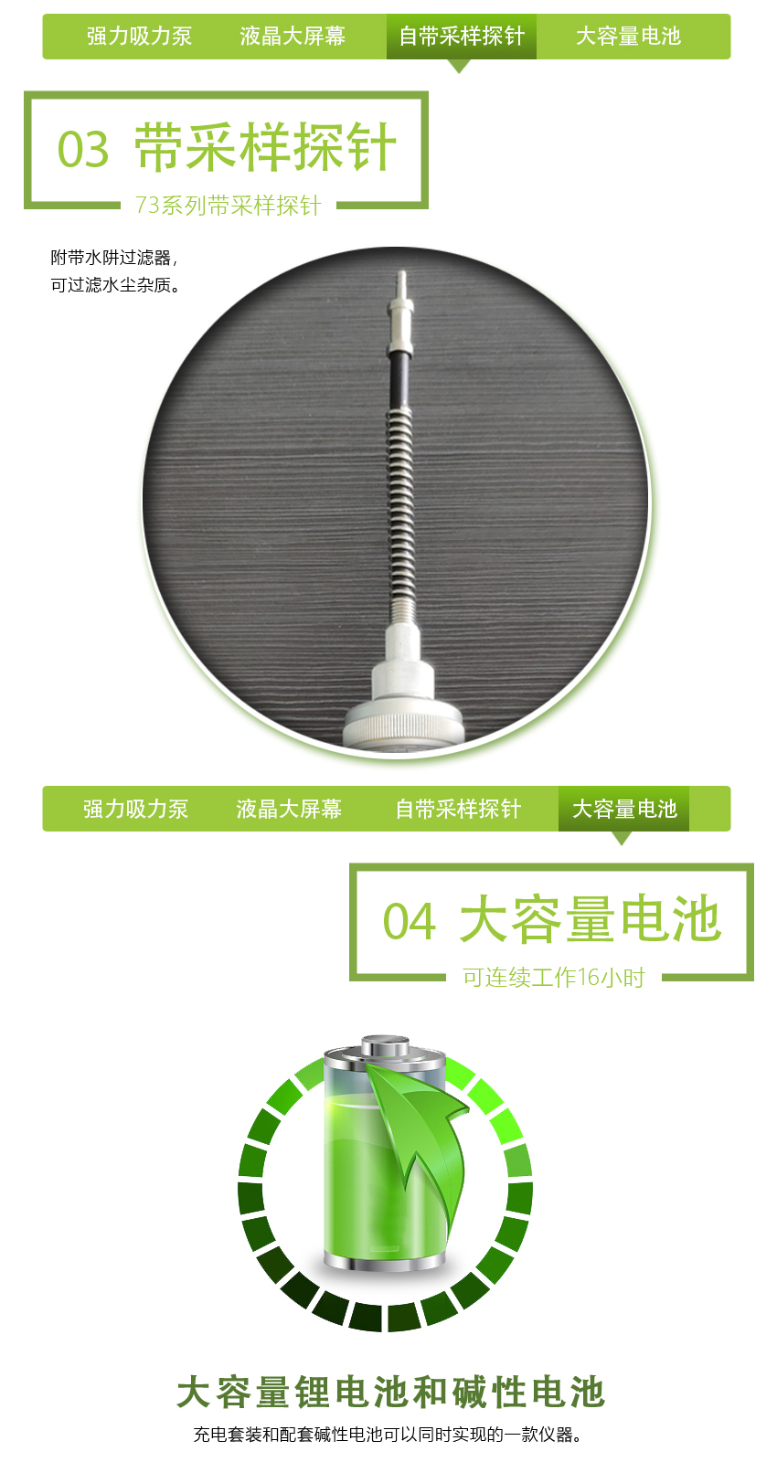 11、內(nèi)置強力吸氣泵,可外接長達30米采樣管