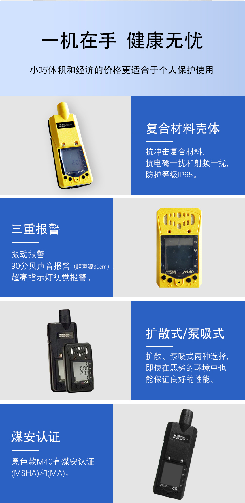 M40多氣體檢測儀專門用于危險環境和密閉空間進入檢測。M40經久耐用,其殼體抗沖擊且抗電磁干擾,即使在惡劣的環境中也能保證良好的性能。可使用四個功能鍵進行簡單、直觀的操作,包括瀏覽數據、校零、標定等,其5秒關機延遲可防止錯誤關機。小巧體積和經濟的價格更適合于個人保護使用。