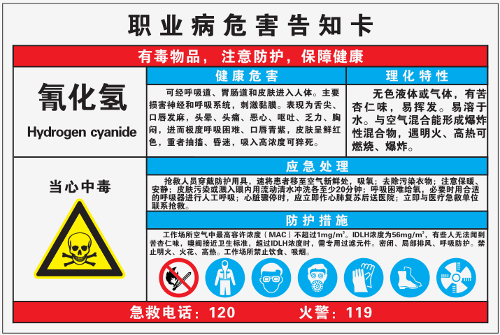 1.接觸機會:其主要應(yīng)用于電鍍業(yè)(鍍銅、鍍金、鍍銀)、采礦業(yè)(提取金銀)、船艙、倉庫的煙熏滅鼠,制造各種樹脂單體如丙烯酸樹酯、甲基丙烯酸樹酯等行業(yè),此外也可在制備氰化物的生產(chǎn)過程中接觸到本物質(zhì)。